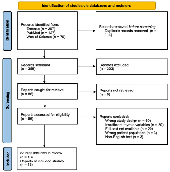 Our systematic literature search initially identified 503 potentially relevant studies across 3 major databases (PubMed, Web of Science, and Embase). Following duplicate removal (n = 114) and screening against inclusion criteria, 13 studies met the eligibility requirements for quantitative synthesis (Figure 1).