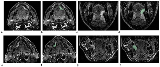 - Vidiri, A.; Panfili, M.; Boellis, A.; Cristalli, G.; Gangemi, E.; Pellini, R.; Marzi, S.; Covello, R. The Role of MRI-Derived Depth of Invasion in Staging Oral Tongue Squamous Cell Carcinoma: Inter-Reader and Radiological–Pathological Agreement. Acta Radiol. 2020, 61, 344–352. [Google Scholar] [CrossRef]
