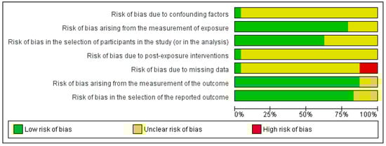 - Sterne, J.A.C.; Hernán, M.A.; Reeves, B.C.; Savović, J.; Berkman, N.D.; Viswanathan, M.; Henry, D.; Altman, D.G.; Ansari, M.T.; Boutron, I.; et al. ROBINS-I: A tool for assessing risk of bias in non-randomised studies of interventions. BMJ 2016, 355, i4919. [Google Scholar] [CrossRef] [PubMed]
