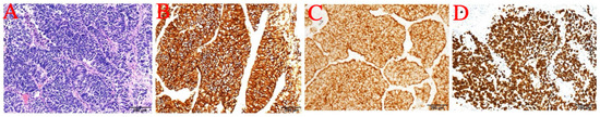 Figure 3. (A) 20× photo. (B) CD56. (C) Syn. (D) TTF-1.