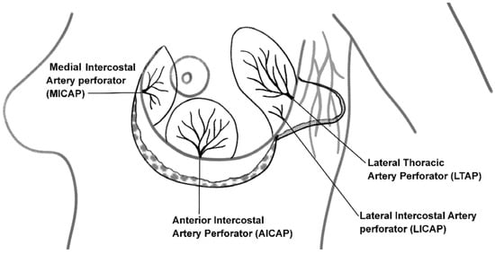 - Carrasco-López, C.; Julian Ibañez, J.F.; Vilà, J.; Luna Tomás, M.A.; Navinés López, J.; Pascual Miguel, I.; Fernandez-Llamazares-Rodriguez, J.; Higueras-Suñe, C. Anterior Intercostal Artery Perforator Flap in Immediate Breast Reconstruction: Anatomical Study and Clinical Application. Microsurgery 2017, 37, 603–610. [Google Scholar] [CrossRef]