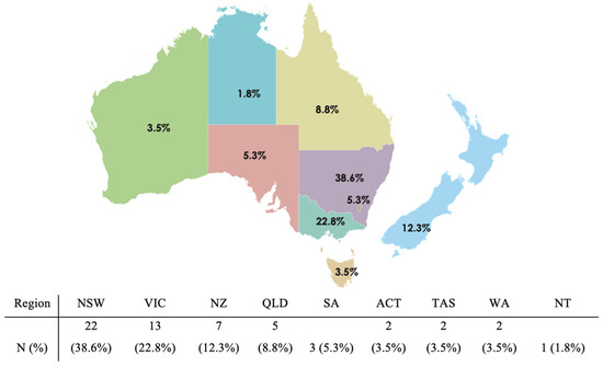 Table 1]. Practice settings were primarily metropolitan, with a smaller proportion of practice settings being regional or remote centres. There were respondents from all Australian states and territories (NSW = 39%, VIC = 23%, QLD = 9%, SA = 5%, TAS = 4%, ACT = 4%, WA = 4%, NT = 2%), as well as New Zealand (12%) [