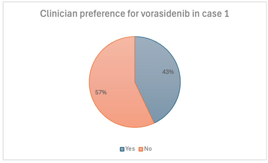 Clinicians were also asked whether they would consider vorasidenib over current adjuvant therapies if it was available. Among the 37 respondents, 57% indicated they would not prefer vorasidenib in this case [