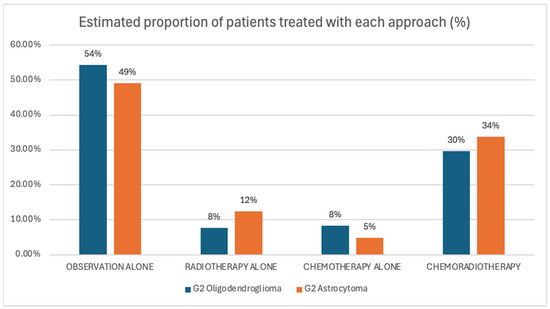 Figure 5]. Following observation, the next most frequent recommendation was a combination of chemotherapy and radiotherapy, with 33% selecting this approach for astrocytomas and 30% for oligodendrogliomas. Single-modality treatments, such as radiotherapy alone or chemotherapy alone, were less commonly chosen.