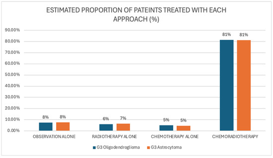 Further analysis of treatment preferences for grade 3 gliomas indicated a strong consensus among clinicians for a combined approach of chemotherapy and radiotherapy for both grade 3 oligodendrogliomas and grade 3 astrocytomas, with over 80% of respondents selecting this treatment strategy in each case [