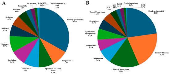 - The most common tumor site was the pituitary gland and craniopharyngeal duct, representing 22.4% of all tumors.