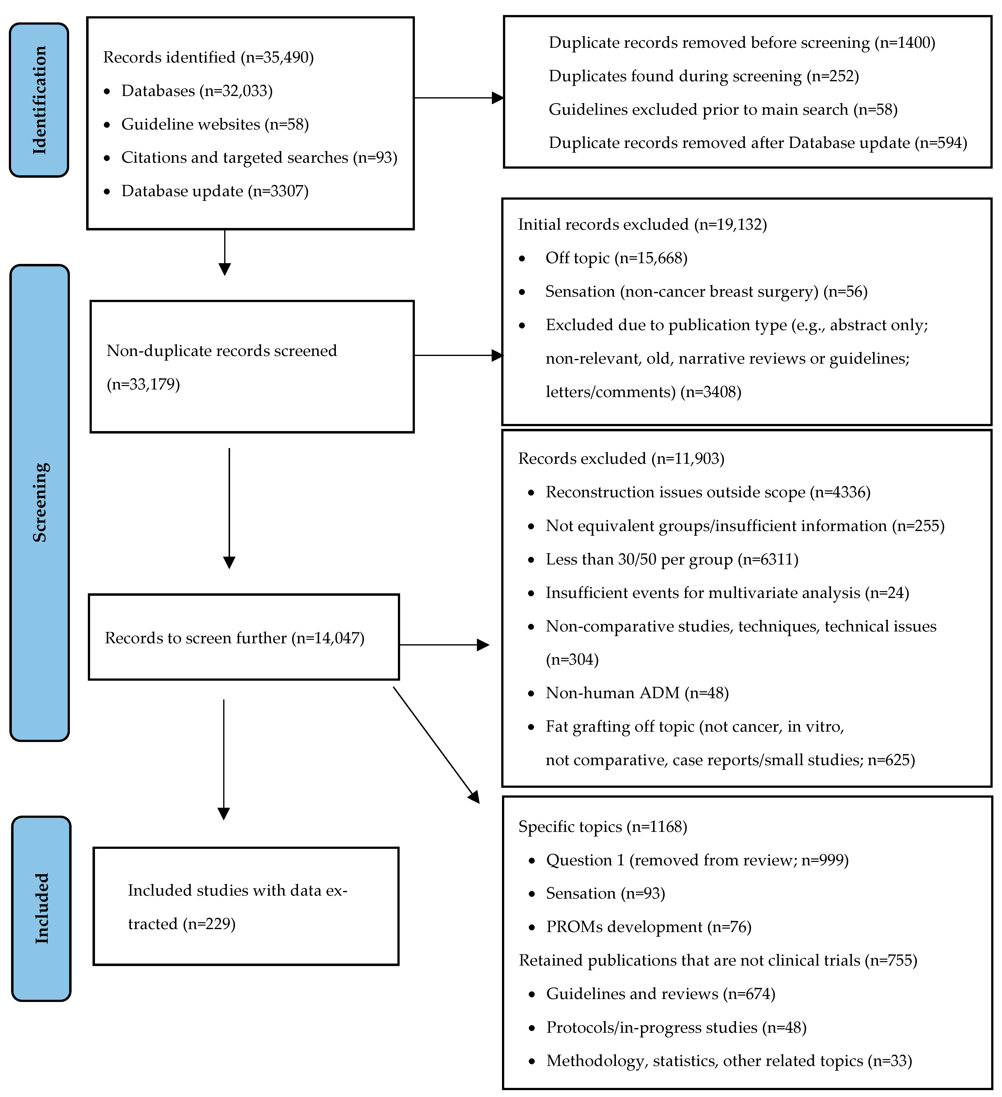 - Graziano, F.D.; Plotsker, E.L.; Rubenstein, R.N.; Haglich, K.; Stern, C.S.; Matros, E.; Nelson, J.A. National trends in acellular dermal matrix utilization in immediate breast reconstruction. Plast. Reconstr. Surg. 2024, 153, 25e–36e. [Google Scholar] [CrossRef]