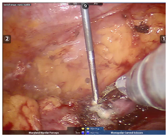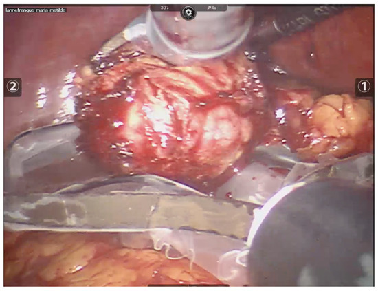 Once peri-tumoral hemostatic control was achieved, the lesion was fully enucleated (See Figure 4). In the case of bleeding during enucleation, surface radiofrequency was applied directly to the bleeding vessel. At the end of the procedure, for oncological safety, radiofrequency was applied to the edges of healthy tissue and to the tumor bed to extend the oncological margin (See Figure 5).