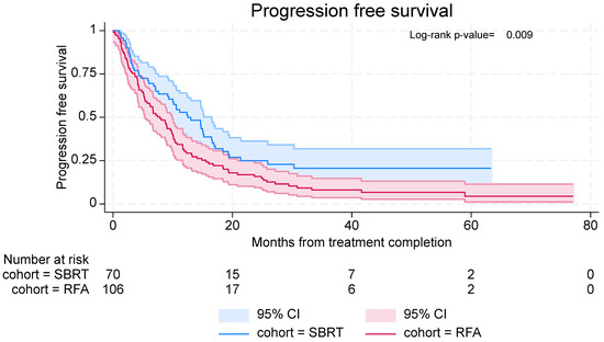 PFS in patients with lung metastases treated with SBRT and RFA.