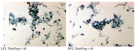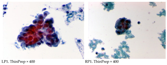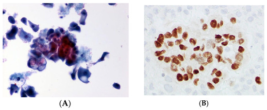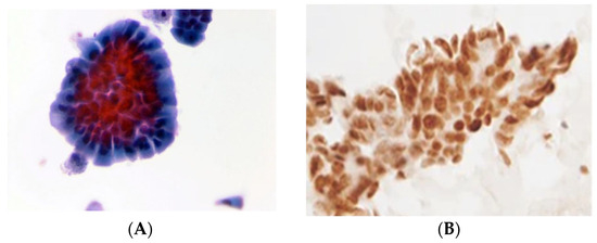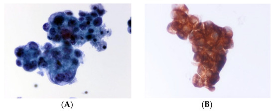 - Fadda, G.; Rossi, E.D.; Mule, A.; Miraglia, A.; Vecchio, F.M.; Capelli, A. Diagnostic efficacy of immunocytochemistry of Fine Needle Aspiration iopsies processed by Thin-Layer Cytology. Acta Cytol. 2006, 50, 129–135. [Google Scholar] [CrossRef] [PubMed]