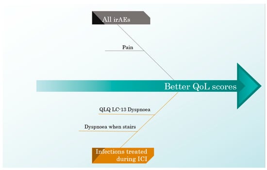 A cause–effect diagram illustrating the positive influence of ICI predictors on the QoL scores.