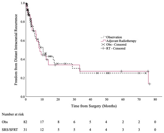 Distant intracranial control of the post-operative SRS/SFRT and observation cohorts.
