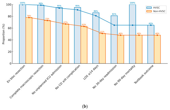 LOS is a key component of TO analysis. LOS inclusion acts as a surrogate marker for deviations from expected post-operative trajectory not otherwise captured by other measures of post-operative complications. LOS also provides a metric for hospital resource utilisation and financial expenditure, providing an important measure for institutional cost-effectiveness. LOS is a multifactorial outcome influenced by patient characteristics, disease and surgical complexity, cultural factors and institutional practices. Despite its regular inclusion, no standardised methodology for defining an optimal LOS has been established in the TO literature. Commonly employed methodologies include expert opinion and cohort percentile-based approaches (commonly 50th or 75th percentile). As a result, reported LOS thresholds range from 7 to 21 days [6,7,8,12]. The selection of a lower-range LOS may fail to appropriately reflect the clinical complexity managed by high-volume specialist centres and may disproportionately exclude patients with advanced disease from achieving a TO. In the current series, preliminary analysis identified that day 14 was the inflexion point at which deviation from the expected post-operative course occurred. As such, it serves as a clinically meaningful and evidence-based threshold for defining a prolonged LOS.