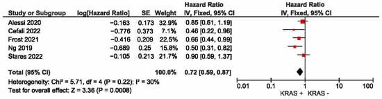 KRAS +/− status and overall survival [17,18,22,24,26,27,28,29].