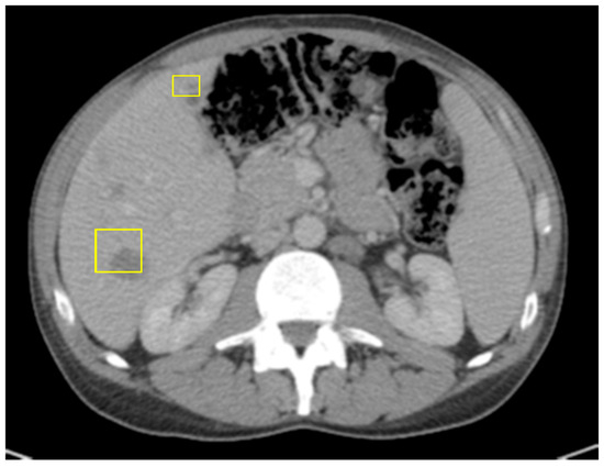 The patient was initially given neoadjuvant systemic therapy with FOLFOX (folinic acid, 5-fluorouracil, oxaliplatin). After two months of treatment, repeat CT imaging demonstrated a reduction in the size of the cecal mass and mesenteric lymph nodes, and his serum carcinoembryonic antigen (CEA) level had decreased to 2.3, indicating a favorable initial response. A laparoscopic-assisted right hemicolectomy with anastomosis and omentectomy was performed. The surgical pathology demonstrated a T4 tumor with invasion into the abdominal wall, though the resection margins were negative. However, a postoperative CT scan of the abdomen and pelvis performed three days later revealed new multiple hepatic metastases (Figure 3).