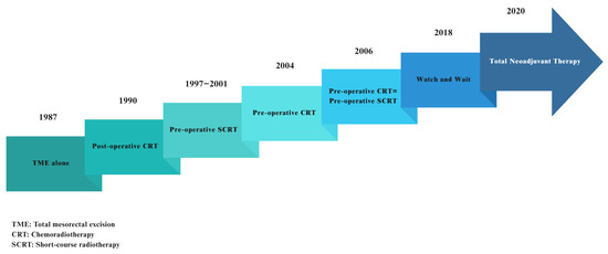 Figure 1 summarizes the evolution of the new advances in the treatment of LARC from the 1980s to the 2020s.