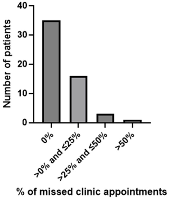 Frequency of missed clinic appointments.