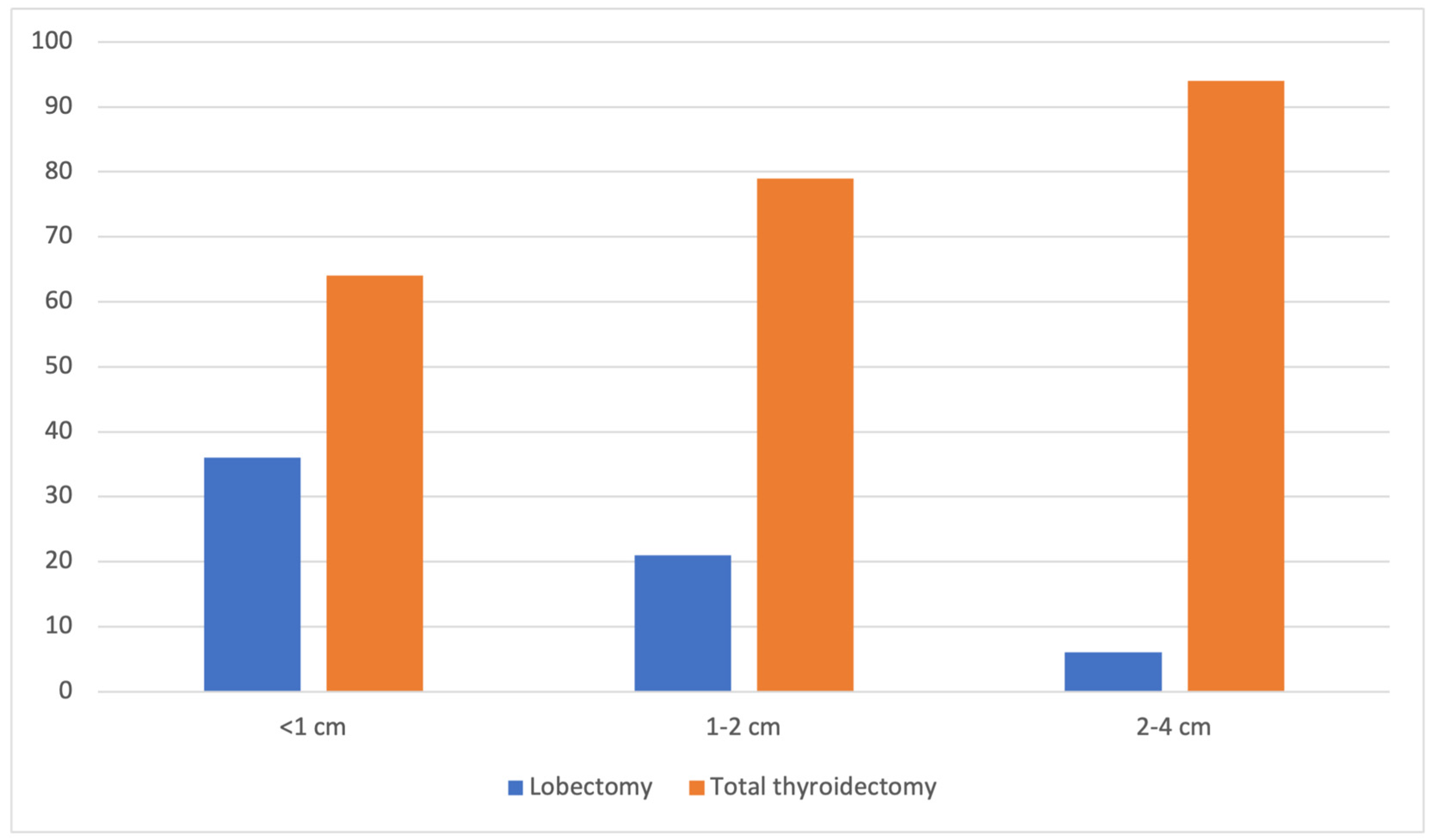 - Worrall, B.J.; Papachristos, A.; Aniss, A.; Glover, A.; Sidhu, S.B.; Clifton-Bligh, R.J.; Learoyd, D.; Tsang, V.H.M.; Gild, M.; Robinson, B.G.; et al. Lobectomy and completion thyroidectomy rates increase after the 2015 American Thyroid Association Differentiated Thyroid Cancer Guidelines update. Endocr. Oncol. 2023, 3, e220095. [Google Scholar] [CrossRef]