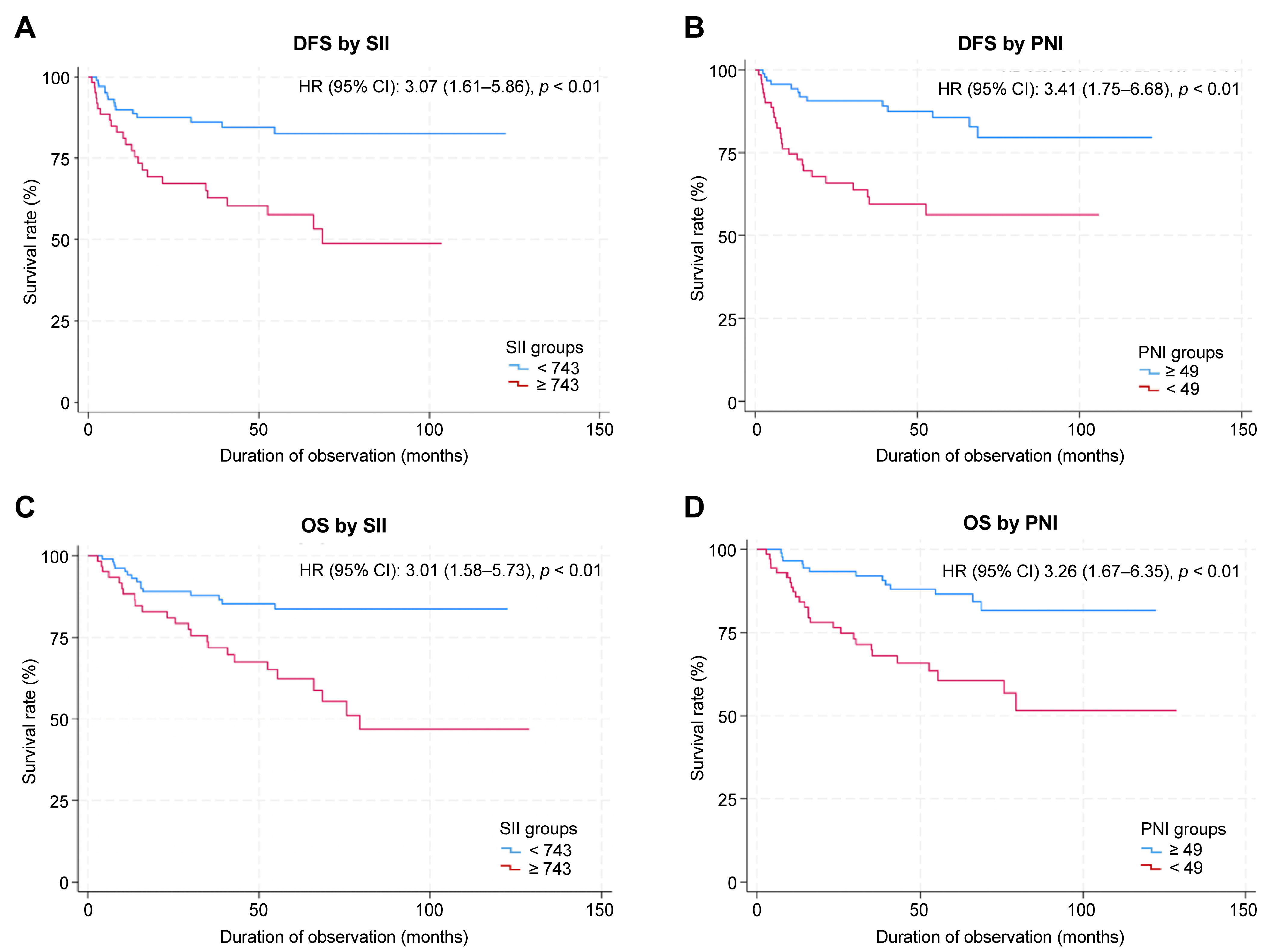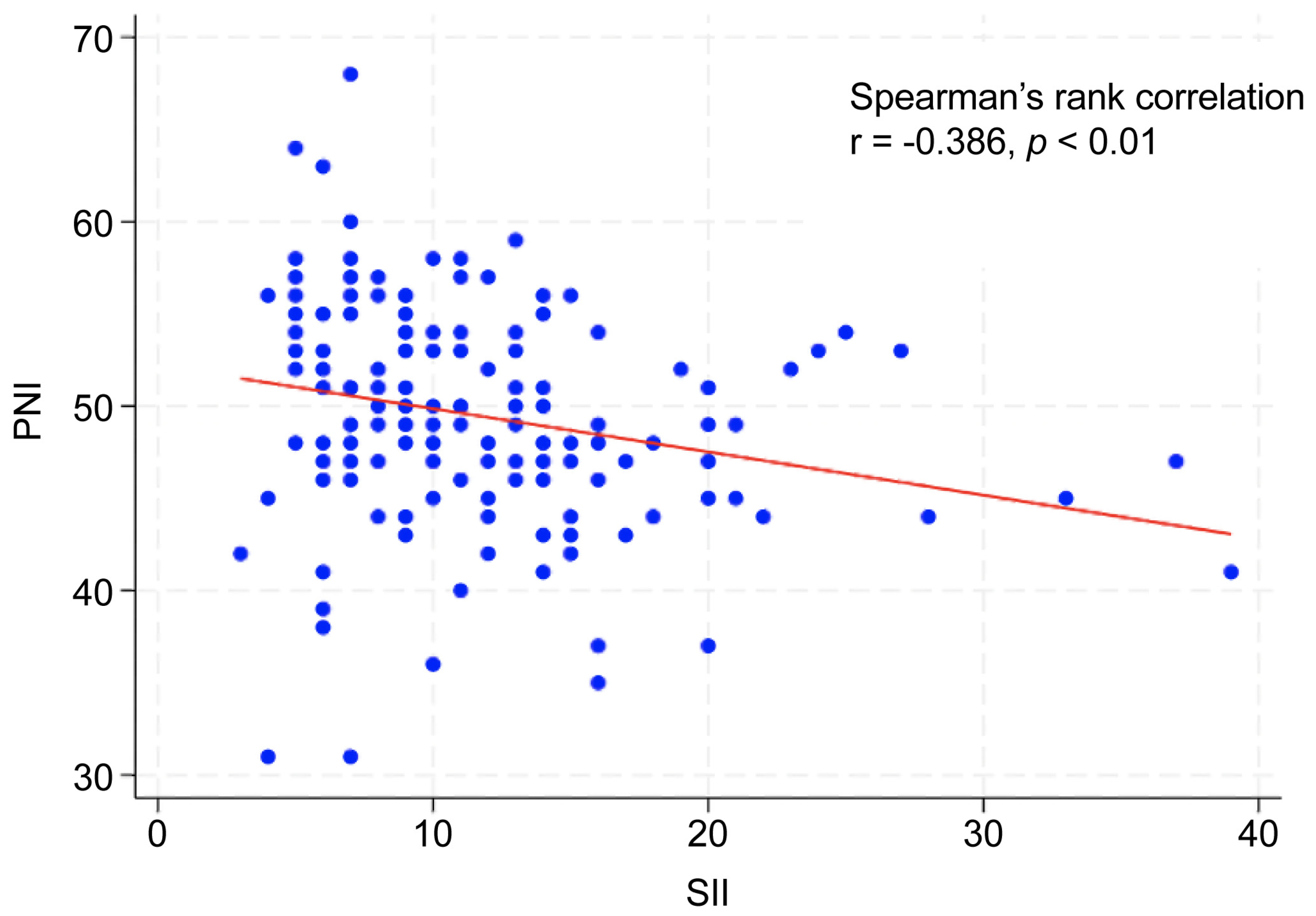 | Variable | SII, n (%) | PNI, n (%) | ||||