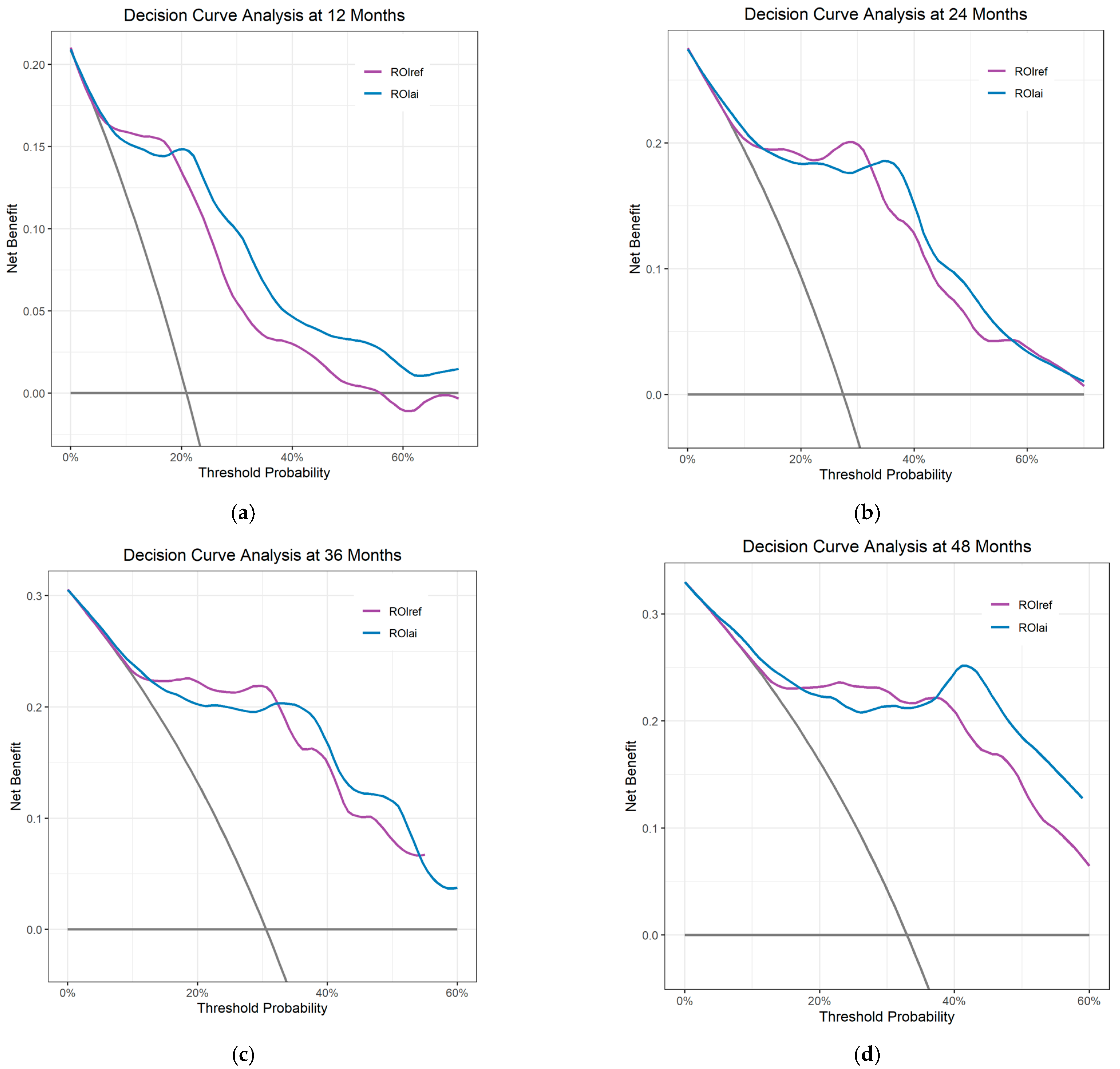 25], which quantified the net benefit of ROIref-based method and ROIai-based method across risk thresholds spanning 12 to 48 months, thereby informing their applicability in clinical decision-making.
