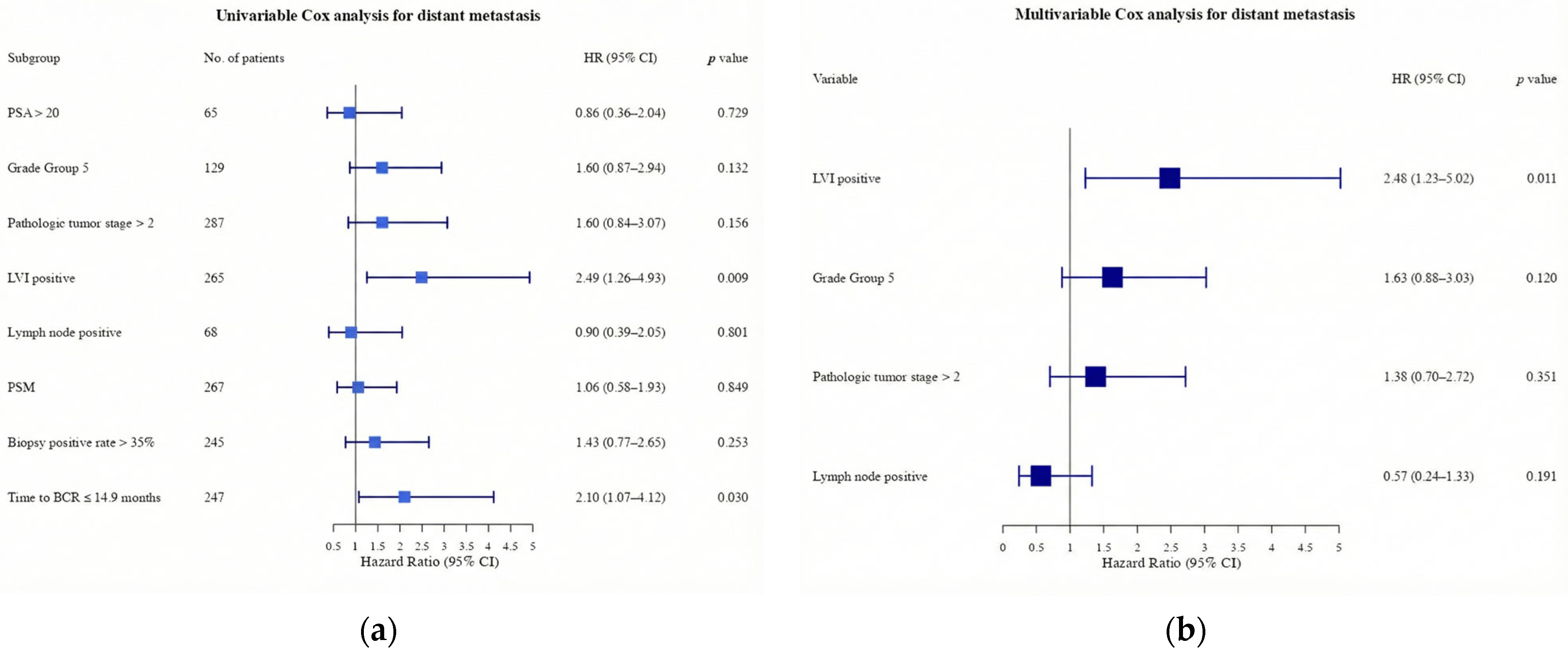 - Liu, H.; Zhou, H.; Yan, L.; Ye, T.; Lu, H.; Sun, X.; Ye, Z.; Xu, H. Prognostic significance of six clinicopathological features for biochemical recurrence after radical prostatectomy: A systematic review and meta-analysis. Oncotarget 2018, 9, 32238–32249. [Google Scholar] [CrossRef] [PubMed]