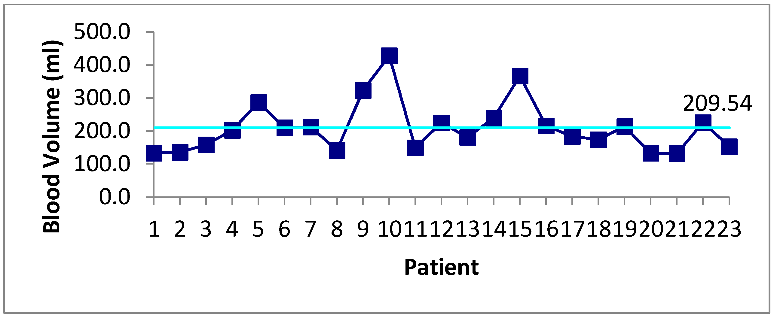 Results: To establish baseline data, we identified 23 patients who underwent ASCT at LHSC in 2022. An average of 210 mL (range: 131–428) (