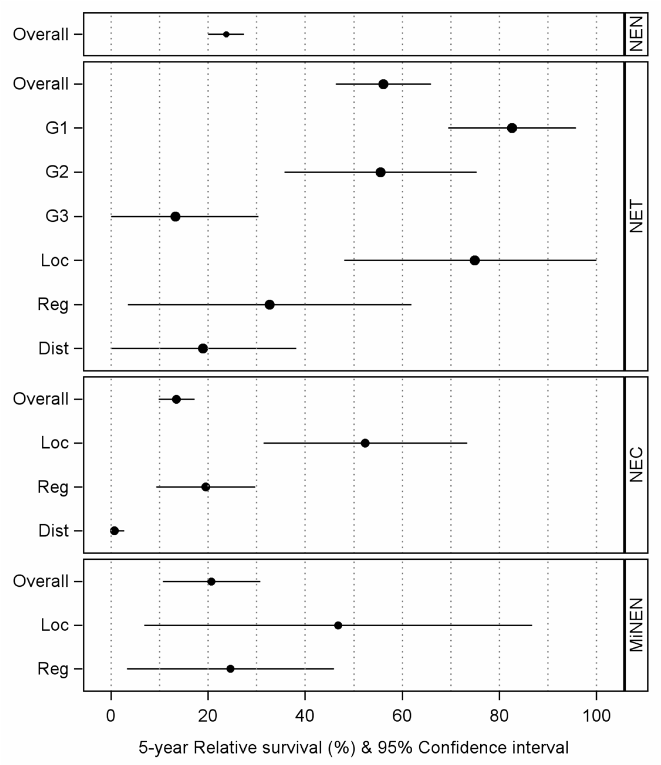 | Neuroendocrine neoplasms | 294 | 1.4 | 0.1 | 0.9 | 0.1 | 126 | 0.6 | 0.1 | 0.4 | 0.1 |