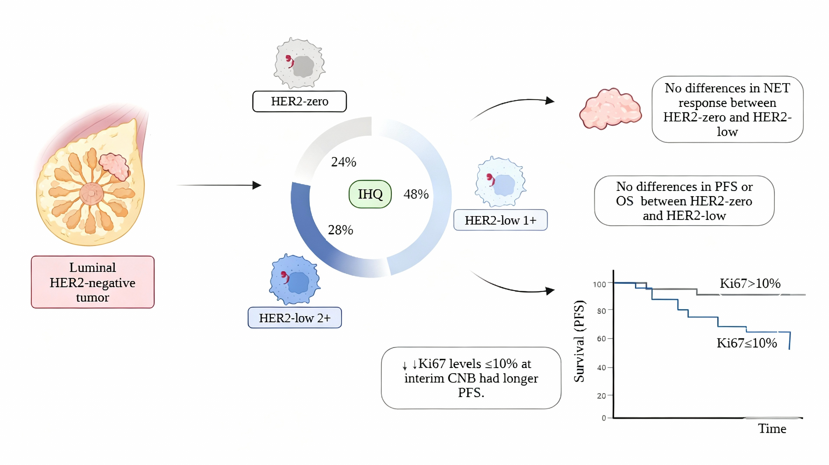 21]. This study aimed to assess whether low HER2 expression (IHC-score 1+/2+ and negative ISH) impacts the response to NET in luminal BC, compared to HER2-zero tumors (IHC-score 0).