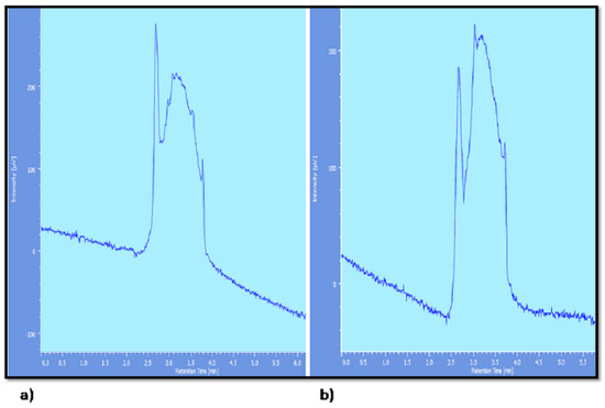 Limited bioavailability of quercetin was due to its degradation in the presence of hepatic enzymes [60]. To mimic the in vivo conditions, rat liver homogenate (S9G) was added to the medium. To study the stability of quercetin released from pure quercetin solution, liposomes and nanocochleates, aliquots were withdrawn after a 1 h interval and 8 h interval and were injected into the HPLC System (JASCO LC–NET II/ADC, Japan). As seen from the HPLC chromatogram (Figure 9), theretention time of quercetin was found to be 2.6 in the absence of liver homogenate. In the presence of rat liver homogenate, HPLC chromatogram of pure quercetin solution showed an additional peak along with a peak of quercetin within 1 h (Figure 10a). The intensity of the additional peak increased while the intensity of the peak representing quercetin decreased at the end of the 8 h (Figure 9b). As seen from Figure 10c,e, the HPLC chromatogram of quercetin released from the liposomes and nanocochleatesafter1 h showed a characteristic peak of quercetin (RT = 2.6 min). The additional peak was observed at the end of the 8 h in both the liposomes and nanocochleates, but there was a significant difference regarding intensity (Figure 10d,f). This additional peak might be caused by the metabolism of quercetin in the presence of rat liver homogenate (enzymes that might be present in this homogenate lead to the conversion of quercetin into its metabolites). The intensity of the metabolite peak was negligible in the case of nanocochleates because the drug was protected due to the unique structure of the cochleates, which was uniform solid layer. Constituents trapped within the inner walls of the cochleate structure remain protected, irrespective of the exposure of the outer layers of the cochleates to enzymes or the harsh environment [61]. Thus, it could be concluded that quercetin could be well protected from the harsh environment inside the body, leading to a long residence time and can lead to its increased efficacy if it was entrapped in nanocochleates.