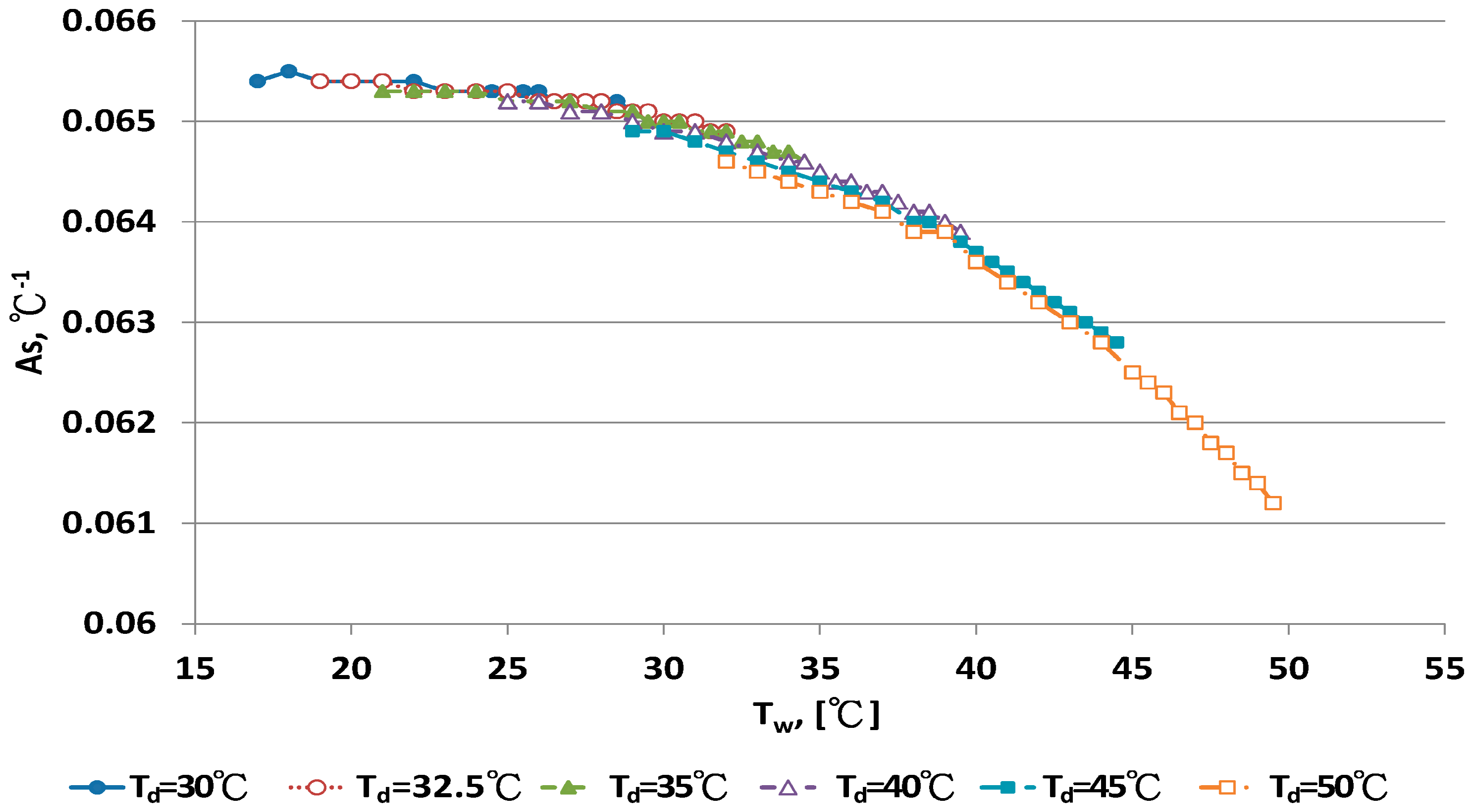 As = 0.0637485 + 0.000187508 Tw − 4.376670 × 10−6 Tw2 − 1.21851 × 10−5 Td