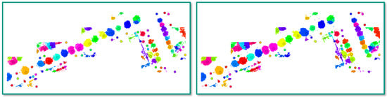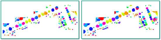 In some cases, a pre-classification with respect to “tree points” and “other points” is already available. Then, individual trees can directly be segmented at point-level by deriving connected components for those 3D points categorized as “tree points”, whereby connected components are further split via an upward and downward growing algorithm if there are multiple seeds at a height between  m and 1 m [,]. Furthermore, it is possible to directly apply a standard clustering technique, such as a k-means clustering or hierarchical clustering [], or the mean shift algorithm []. Particularly the mean shift algorithm has been applied for point cloud segmentation [,,,], since it operates in a data-driven manner without the need for defining a specific geometric model or involving prior knowledge about the number of expected modes. Such a data-driven point cloud segmentation can however be computationally demanding, particularly for the consideration of larger 3D point clouds. Accordingly, it is often desirable to improve computational efficiency, which can for instance be achieved by applying the mean shift algorithm on a 2D projection of the considered 3D point cloud as proposed in the context of tomographic SAR data processing []. For a ground-based acquisition of 3D point cloud data as, e.g., given when using mobile mapping systems, a significantly higher point density can be expected so that further strategies for improving computational efficiency are required.
