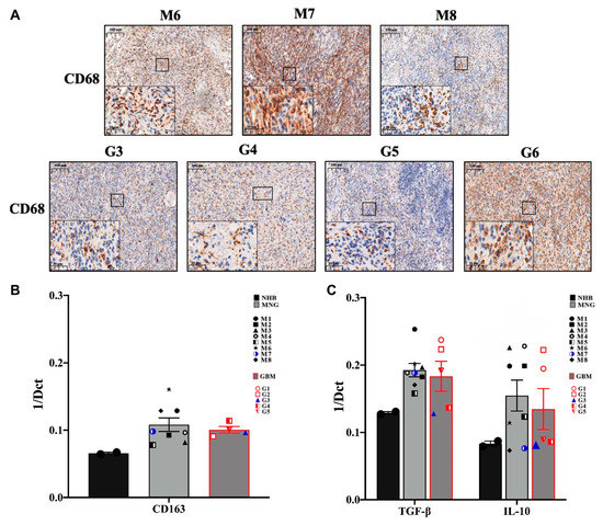 3.2. The Immune Microenvironment Is Actively Suppressive in Both MNG and GBM
