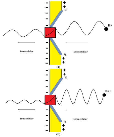 Evidence of proton leak through voltage-gated ion channels is established. A study on a patient with severe mixed phenotype who presented with conduction disease and dilated cardiomyopathy demonstrated that a proton leak through mutated Nav1.5 mutation (R219H) is responsible for acidifying the cardiac myocytes as well as the development of arrhythmias and dilated cardiomyopathy [14]. Additionally, mutations in the positively charged residue of segment S4 of voltage-gated sodium channel would result in leakiness of the channel for protons and cations [15]. Another study on cardiomyocytes derived from patient-specific human induced pluripotent stem cells proposes a link between mutations in Nav1.5 channels and the pathogenesis of cardiac arrhythmias and dilated cardiomyopathy through generating proton leak [16]. Additionally, a mutation in voltage-gated sodium channel 1.4 (Nav1.4) in skeletal muscles causes inherited periodic paralysis. Mutation in the S4 voltage sensor in the α subunit of Nav1.4 alters the channel properties and leads to a leak of sodium or protons through the voltage sensor causing depolarization [17]. These currents are called gating pore currents (omega currents) that are not conducted through the usual pathway of conduction but conducted through voltage sensor domains as proposed in the literature [14,15,16,17]. This gives the motivation to apply the quantum model, especially that proton leak does not occur through the usual sodium permeation pathway, and the quantum model can explain the proton leak by quantum tunneling through the closed gate of channels, which is a quantum transport different from the classical permeation through the open channels. Additionally, the direct correlation between proton leak, membrane depolarization and cardiac arrhythmias supports the quantum model because it predicts that quantum tunneling of protons through closed gates can depolarize the membrane potential directly and cause arrhythmias, as will be discussed later in the study.