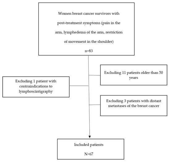Exclusion criteria included: signs of progression of the main oncological disease; the presence of distant metastases of breast cancer; acute injuries of the musculoskeletal system; the presence of hemodynamically significant atherosclerotic stenosis of the head and neck main arteries; acute infectious and mental diseases, as well as other conditions that prevent examination and manual diagnosis; pregnancy; decompensated somatic pathology; contraindications to lymphoscintigraphy.