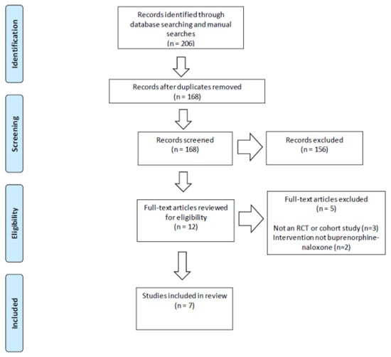 The literature search identified 168 unique articles, of which 12 full text articles were retrieved for further screening (Figure 1). Seven studies met the inclusion criteria for this systematic review.