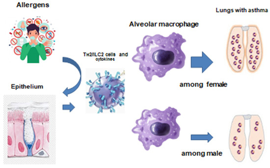Asthma is more commonly diagnosed in boys at an early age. However, during puberty, the sex ratio changes and asthma appears predominantly in women [97,98]. The relationship between sex hormones and the development of asthma has not yet been established. At the same time, they can contribute to the onset and maintenance of the disease.