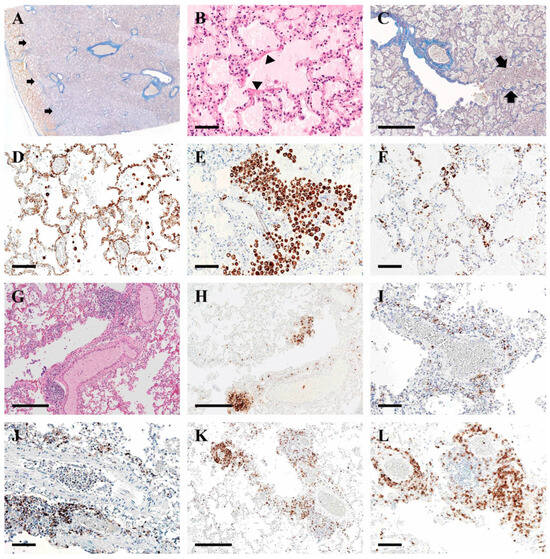 - Aguiar, D.; Lobrinus, J.A.; Schibler, M.; Fracasso, T.; Lardi, C. Inside the lungs of COVID-19 disease. Int. J. Leg. Med. 2020, 134, 1271–1274. [Google Scholar] [CrossRef]