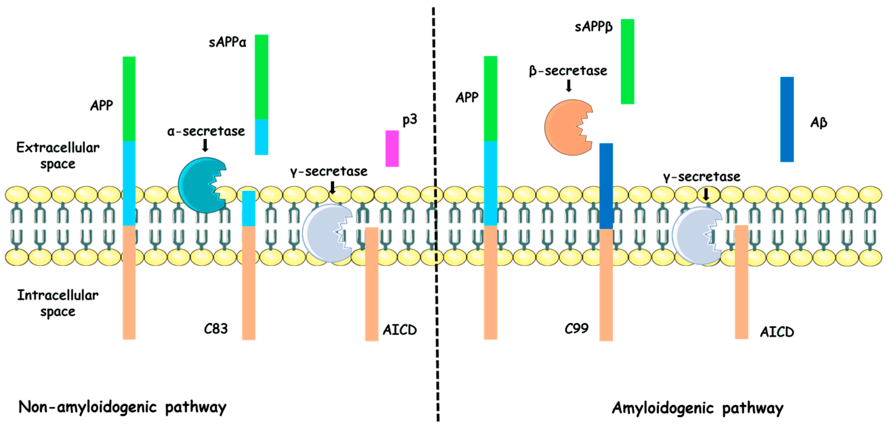- O’Brien, R.J.; Wong, P.C. Amyloid precursor protein processing and Alzheimer’s disease. Annu. Rev. Neurosci. 2011, 34, 185–204. [Google Scholar] [CrossRef] [PubMed]