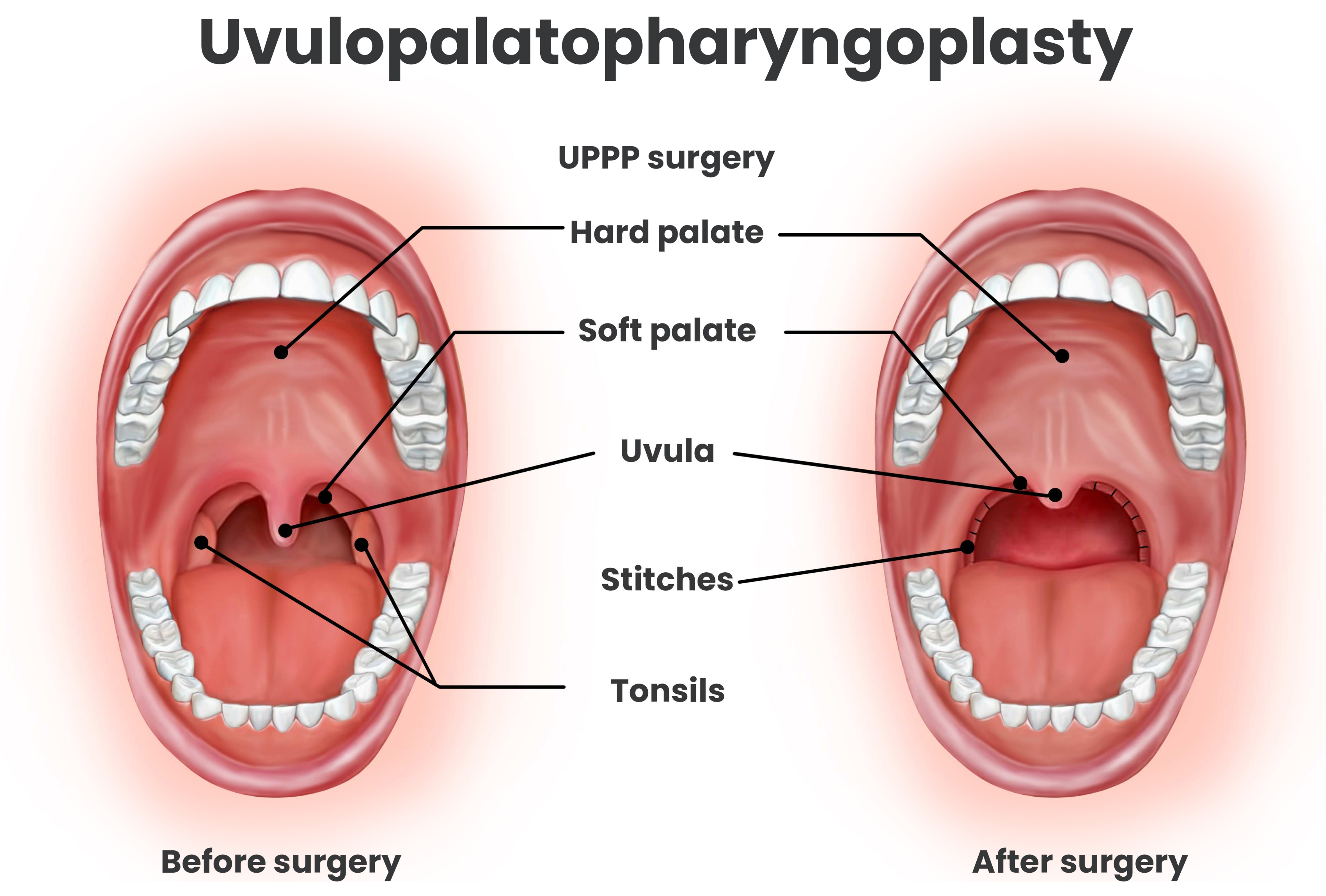 | Palatal Surgery (e.g., UPPP, ESP) | Resection and/or repositioning of palatal tissues reduces retropalatal obstruction and lateral wall collapse. | CPAP-intolerant adults with palatal-dominant obstruction. | Postoperative recovery and pain control required. | Variable efficacy; limited long-term durability; irreversible anatomical changes. |