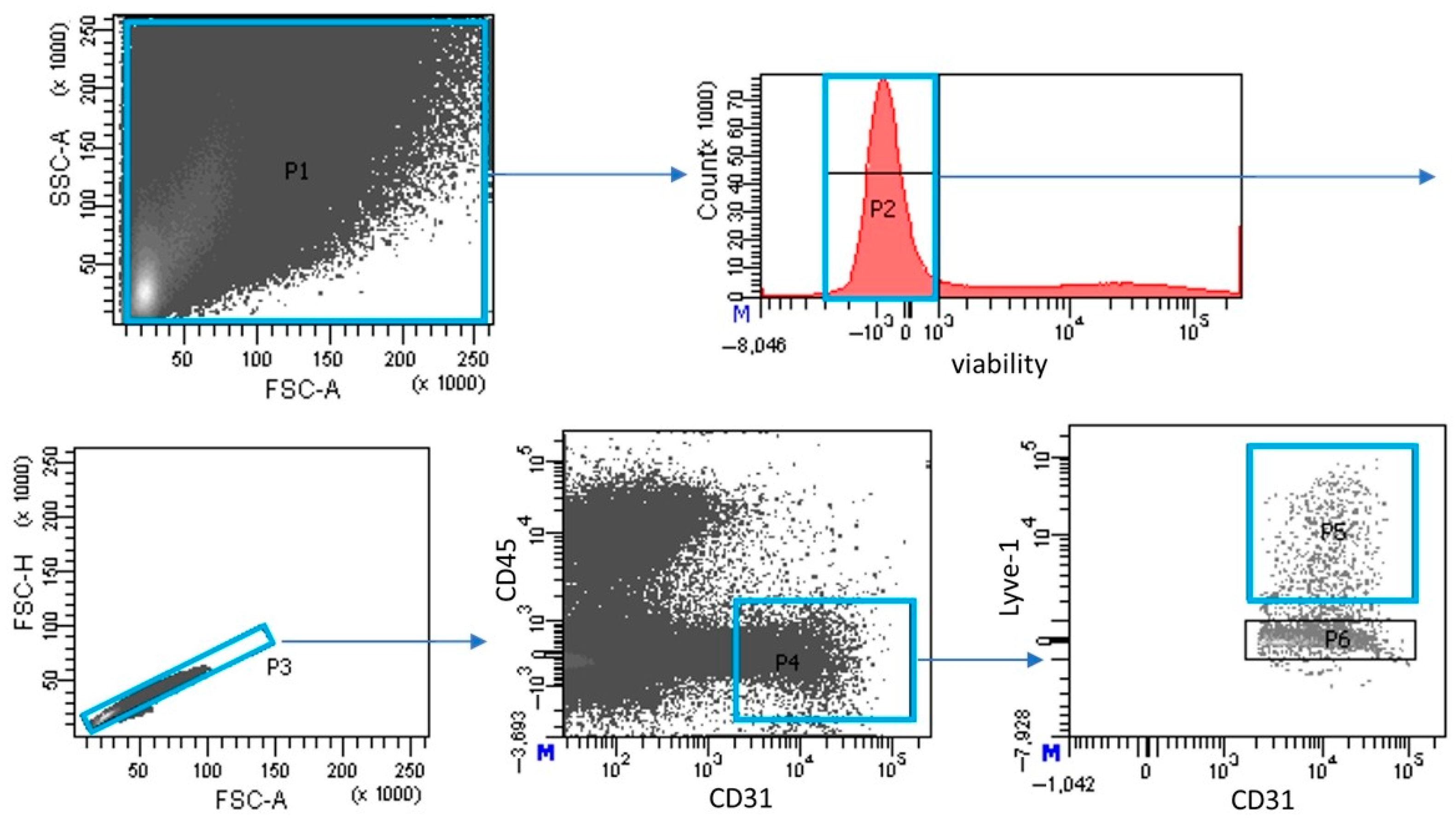 2.2. Lymphatic Endothelial Cell Isolation by Flow Cytometry Sorting