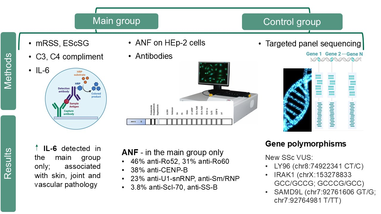 Integrating serological and genetic findings provides a more comprehensive understanding of how immune dysregulation manifests in SSc patients, as well as their relevance to the Kazakh population. Genetic markers play a critical role in identifying individuals at risk for developing SSc, a condition characterized by its clinical heterogeneity. Through the examination of a diverse array of genetic variations, this study has identified several loci that appear to be particularly linked to susceptibility to SSc in the Kazakh population. Novel VUS at the following genomic coordinates were identified and have not been previously reported in association with SSc: LY96 (chr8:74922341 CT/C), PTPN22 (chr1:114381166 CT/C), IRAK1 (indels at chrX:153278833), and SAMD9L (chr7:92761606 GT/G; chr7:92764981 T/TT).