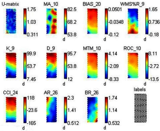 U-Matrix and planes of the SOM network. The results called “labels” on the bottom right are reproduced for clearness in Figure 5.