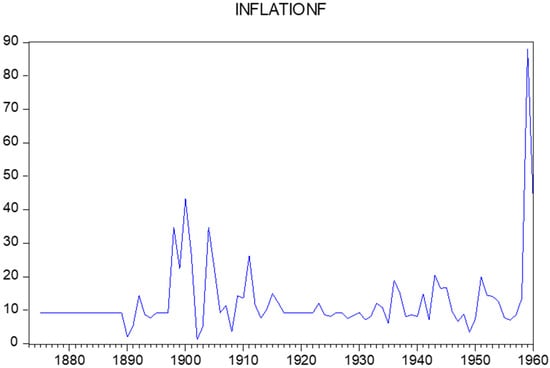 Figure 7 displays the observations on the changes in the postal stamps prices for these years, which were collected from the first mentioned catalogue in Table 2. In addition, Figure 8 displays the estimated historical inflation observations.