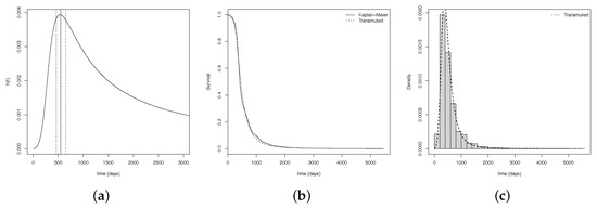 - Granzotto, Daniele Cristina Tita, and Louzada-Neto Francisco. 2014. The Transmuted Log-Logistic distribution: modeling, inference and an application to a polled tabapua race time up to first calving data. Communications in Statistics—Theory and Methods 44: 3387–402. [Google Scholar] [CrossRef]
