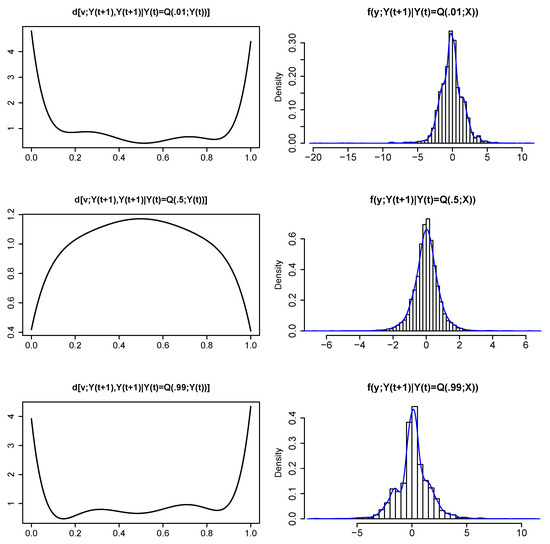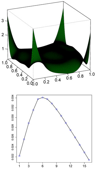 where . Equation (10) allows us to pictorially represent the information present in the LP-comoment matrix via copula density. The various “shapes” of the copula density give insight into the structure and dynamics of the time series.