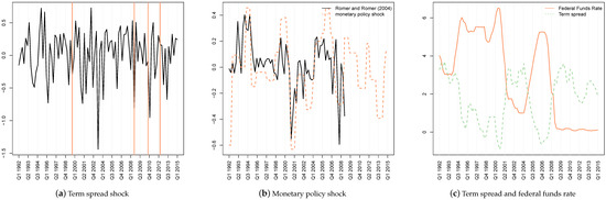 3.4. Did Term Spread and Monetary Policy Shocks Matter Historically?