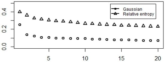 Considering this metric (Zhao 2012), it can be seen that the Gaussian-kernel over-performs relative to the entropy-based approach; this is because in each case its variance explanation function is steeper.