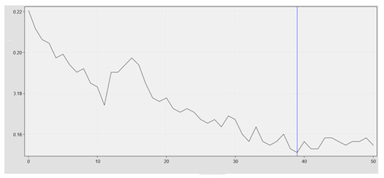 The most popular architecture of neural network was used the multi-layer perceptron (MLP) with one hidden layer. Number of neurons in the layer equals number of explanatory variables. pseudo-Newton optimization technique was used with maximum 200 iterations. A total of 106 parameters were estimated in total. The iteration history is shown in Figure 5.