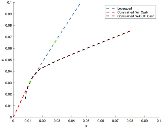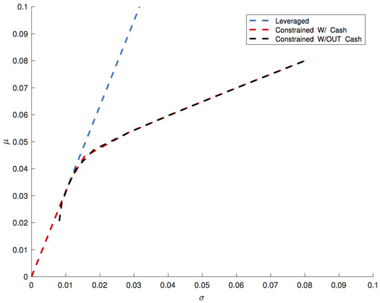 What happens is that the efficient frontier of the Markowitz’s portfolio without cash is equal to the efficient frontier of the leveraged portfolio until
