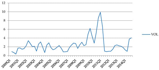 Vietnamese NEER volatility (2000 Q1–2014 Q4).